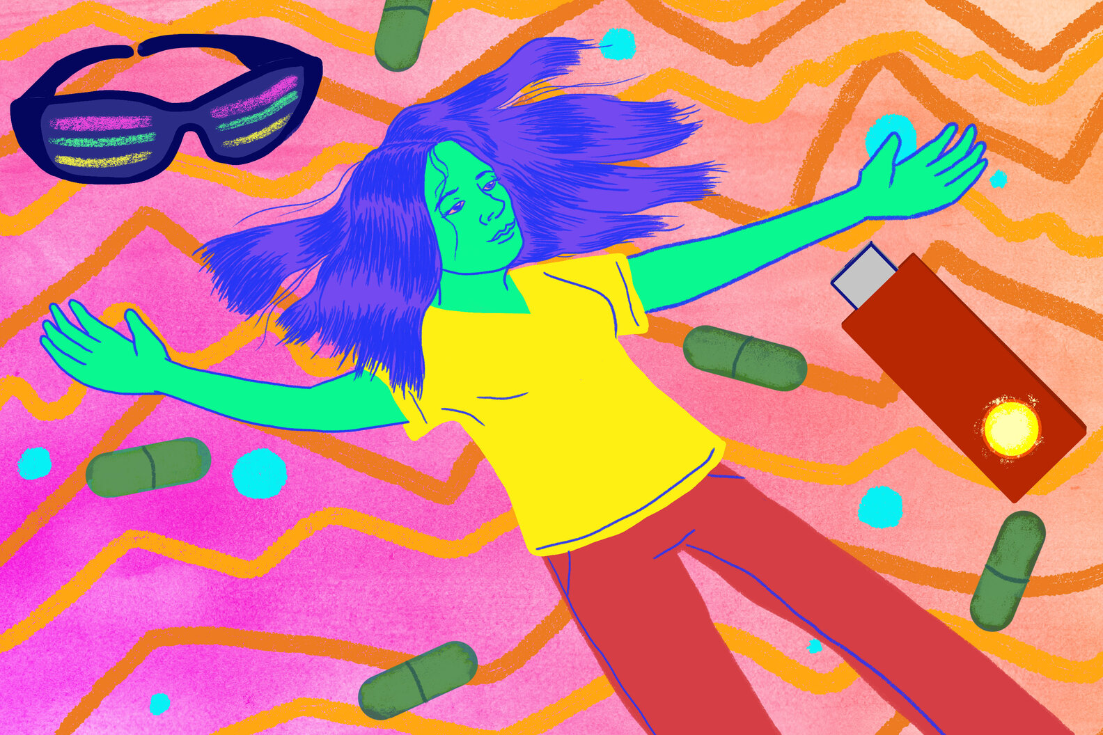 a commotion inside". It made me realize that the same could be said for any drug theoretically, everyone takes drugs in order to get some sort of high (be it coke, heroin or even marijuana) so that they can be out of their bodies yet feeling everything at the same time. We want to be able to experience something that we believe our bodies can't feel on their own. The feeling of getting lost in ones senses and being able to get that overstimulation of stimuli that we are otherwise "blind" to.